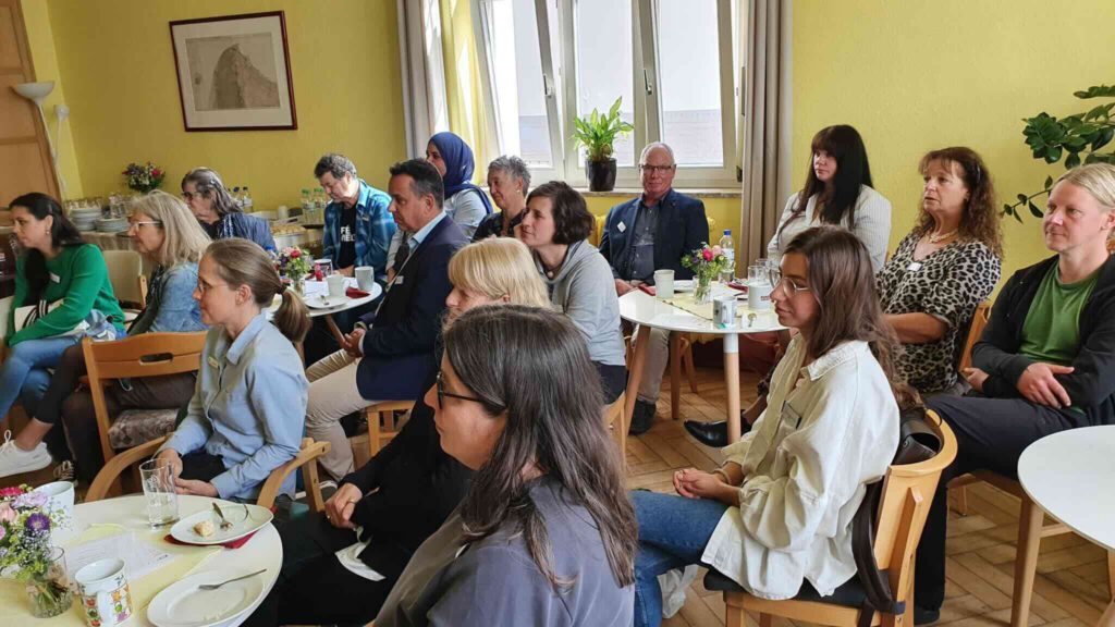 Zum Abschluss ihrer Rede trug Frau Hurtado der Runde das bewegende Gedicht „Zuhause“ von Warsan Shire vor. Es sind nur wenige Zeilen, aber das Ausmaß, was es bedeutet, die Heimat verlassen zu müssen, erreicht die Zuhörenden in ihrer Komplexität tief ins Herz.